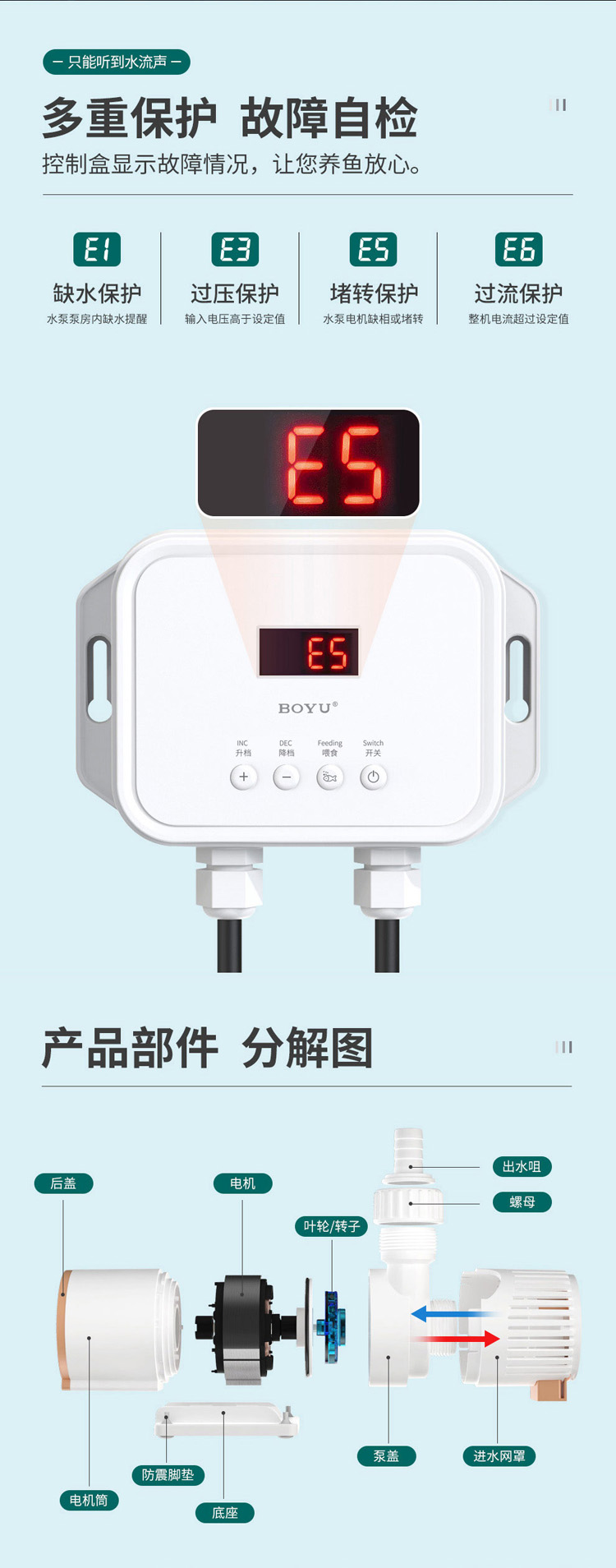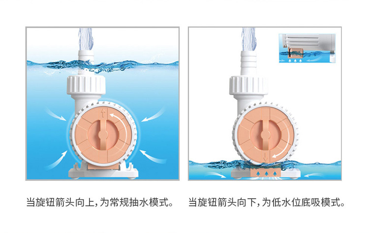 • 內置低水位吸水切換裝置,一機多用,排污更徹底。
